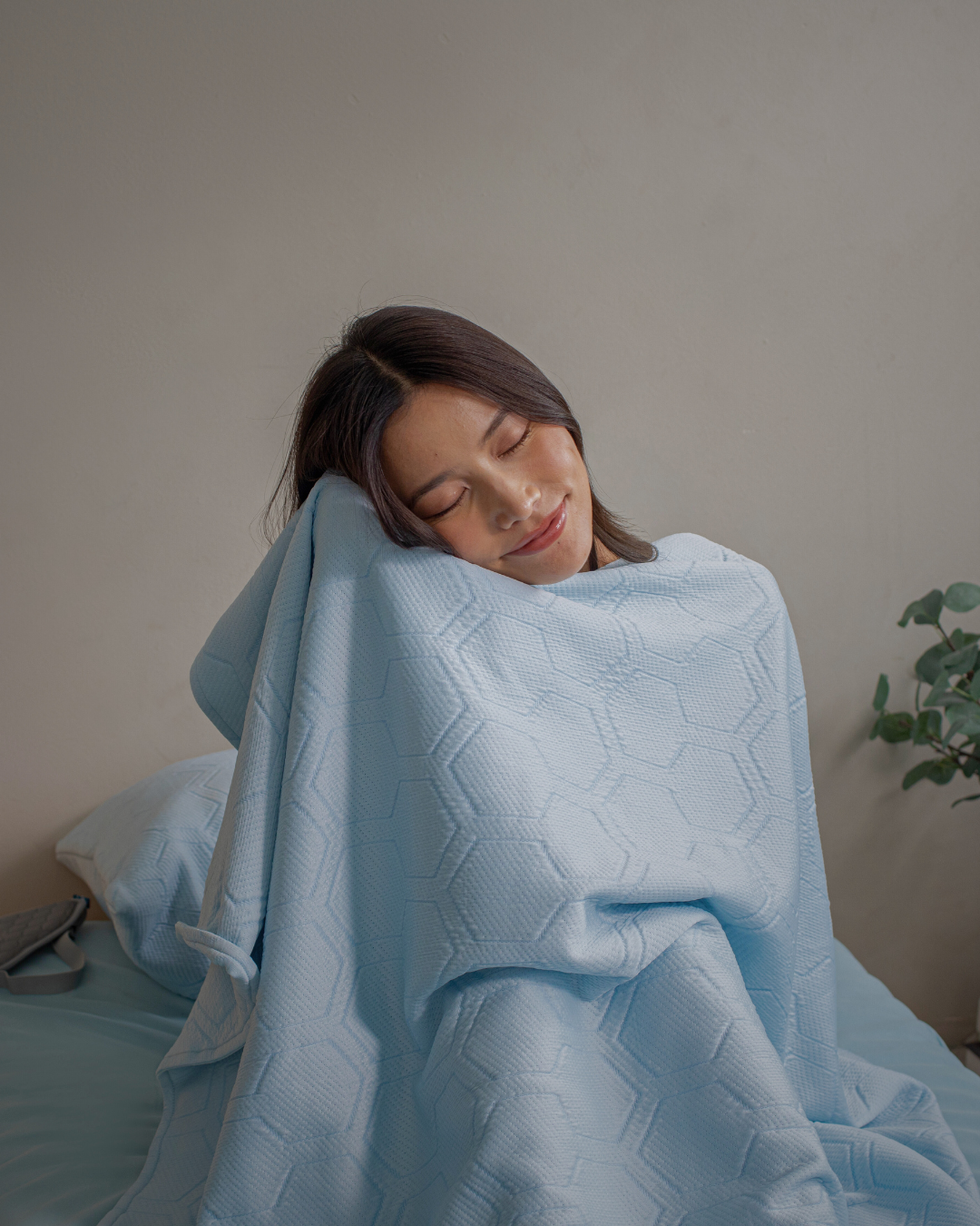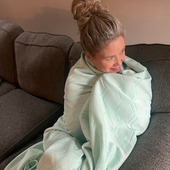 My husband and I really like this blanket! We used to own a couple of weighted blanket but those can get pretty hot so I decided to give this a try! Totally worth the investment. It has a nice cooling sensation and feels cold in the beginning but then as you sleep in it, the temperature is just right for me. Don't know how they do it but its just amazing!